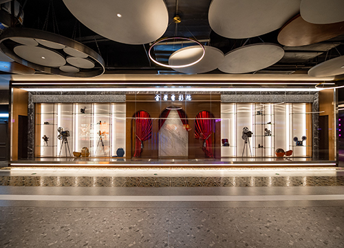 金聲電影院建成于1934年,舊址位于廣州西關(guān)老城區(qū)恩寧路,影院建成后,曾轟動一時,當時戲院占地面積2千多平方米,曾稱為“全市影院中之最宏偉者”,是著名綜合娛樂場所。同時也是廣州第一家有冷氣的影院,坊間流傳:“人皆苦炎熱,我愛金聲涼”的名頭便是由此而來。“新金聲”的整體布局由“重現(xiàn)金聲”(影廳區(qū)域)“藝術(shù)金聲”(公共區(qū)域)“創(chuàng)意金聲”(大堂區(qū)域)三部分構(gòu)成。在籌備團隊的精心策劃下,于影院內(nèi)陳列放置了金聲電影院舊址的騎樓裝飾,并將影院的7個影廳分別以7座大家耳熟能詳?shù)睦献痔栍霸好麄兎謩e是:中華、樂善、明珠、新華、新星、長壽、美華。這一個個陪伴了廣州市民童年歲月的老字號影劇院,將以這種特殊的方式得以重生,在“新金聲”的懷抱中,用光影續(xù)寫新的篇章。在公共區(qū)域的裝修設(shè)計上,影院結(jié)合廣府文化元素,參考舊址外立面的建筑特色,利用現(xiàn)代設(shè)計手法,打造極具西關(guān)特色的電影藝術(shù)空間。為更好體現(xiàn)“人皆苦炎熱,唯有金聲涼”這一句曾家喻戶曉的美譽,影院大堂通過玻璃、鏡面、亞克力等材質(zhì),使影迷在進入瞬間開始便能感受到金聲電影院所帶來的歷史文化的厚重感。在公共區(qū)域,通過“策展+”的方式以“百年金聲”為常態(tài)展覽主題...